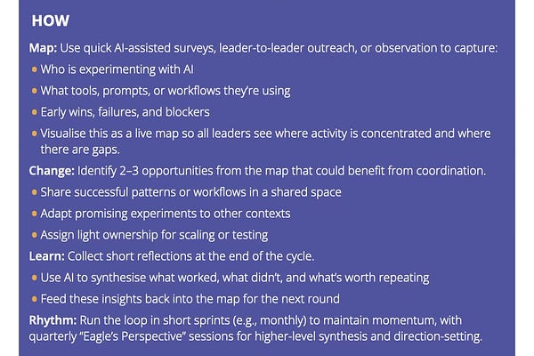 How leaders working together with a simple Map → Change → Learn loop can turn scattered AI experiments into living, organisation-wide capabilities.