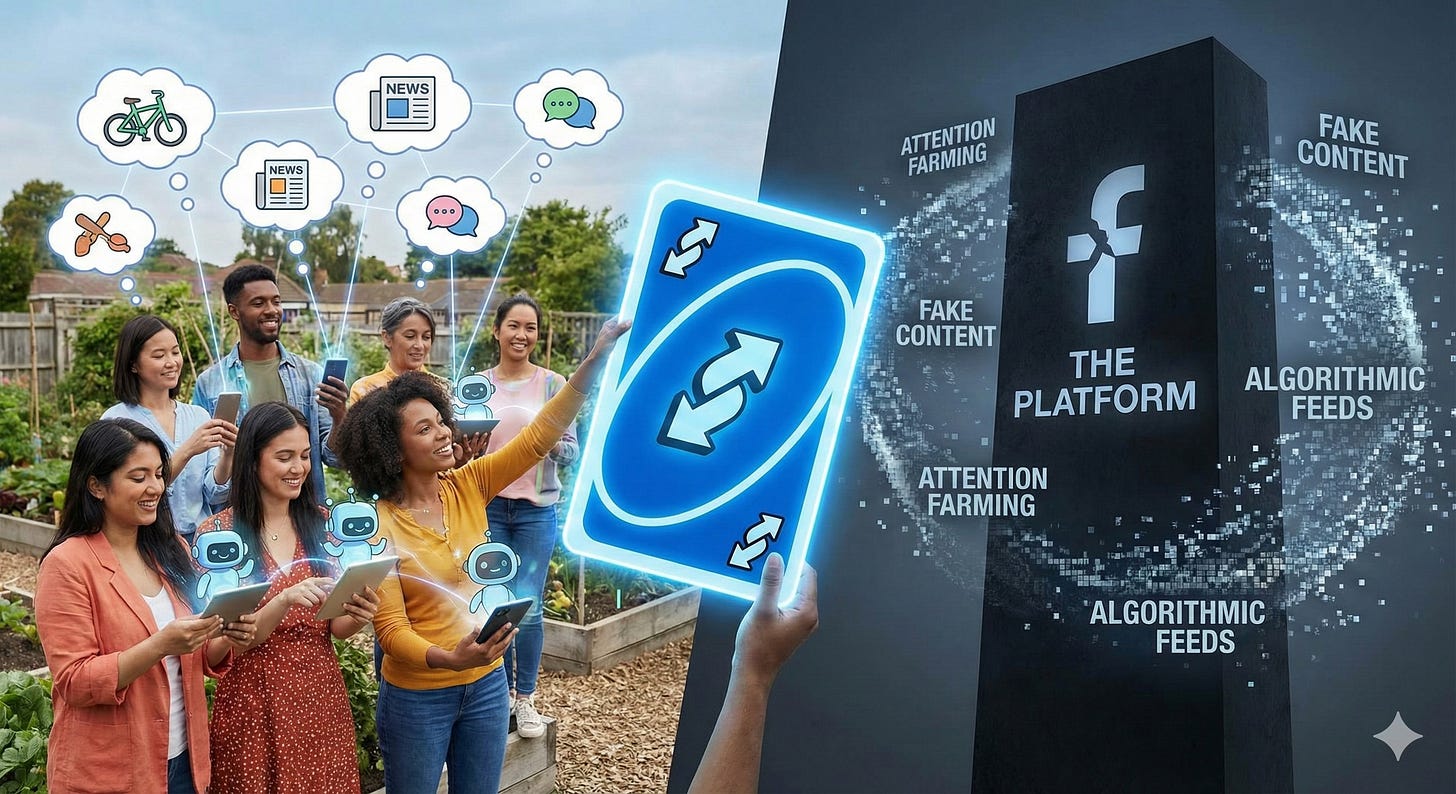 But what if we go back to some of those early social network ideas such as federation, interoperability and the intention economy to play a reverse Uno on algorithmic feeds? If everybody has their own discoverability and curation agent that pulls from multiple networks, communities and messaging platforms to create a personal social feed, then we don’t need to all be on the same platform. If I can tell my agent to keep me updated with all my interests and groups, from local news to hobbies and political debates, and handle the messy details of logging in and aggregating content, then perhaps we could help sustain the safer, more human-scale small world networks that are out there already under the radar. Ever the optimist!